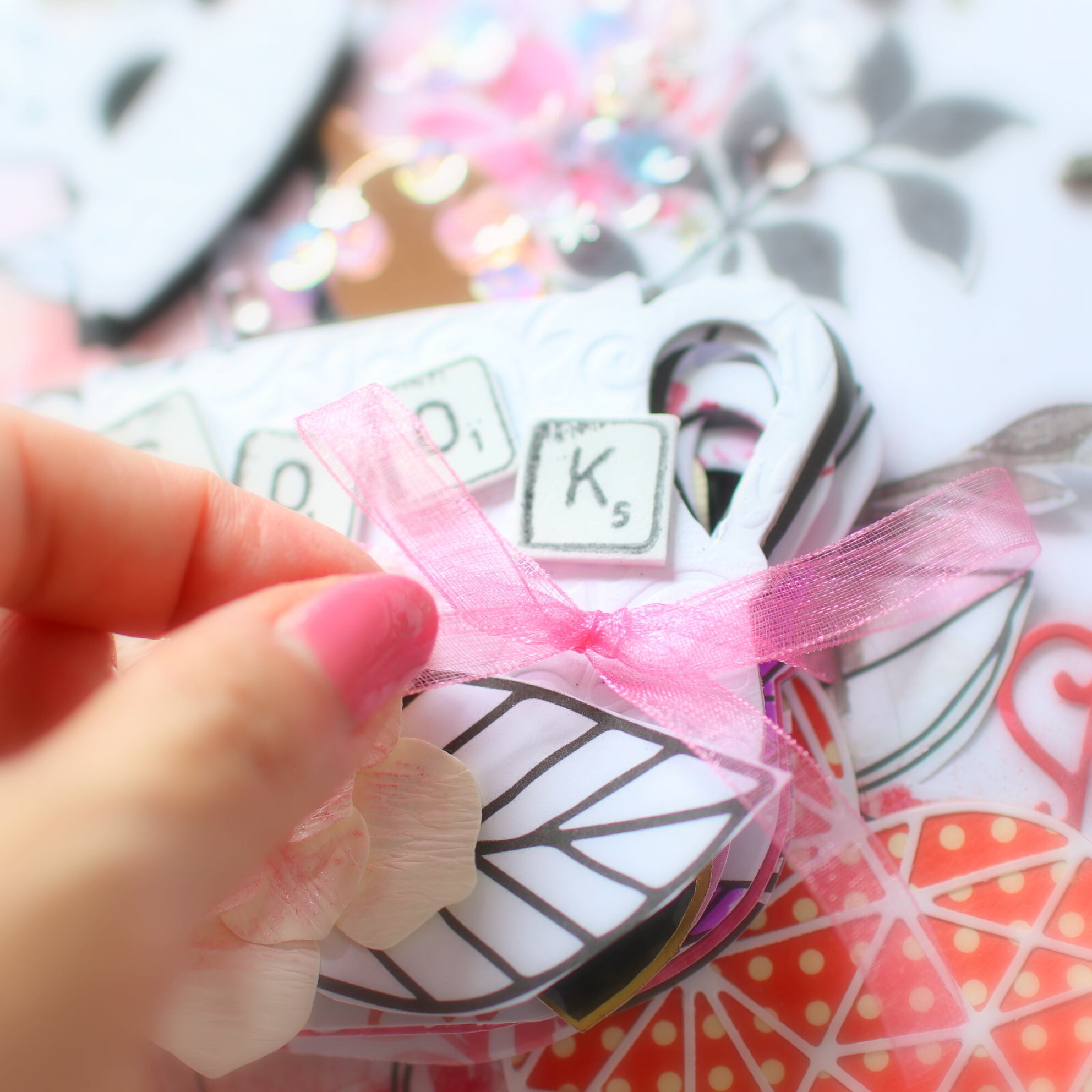 作品はバックにチップボードを貼って、お部屋でも玄関でもお手洗いでもお好きなところへ飾ってください♪ピンクのお花が華やかさをプラスできますよ♪女子力アップです♡
